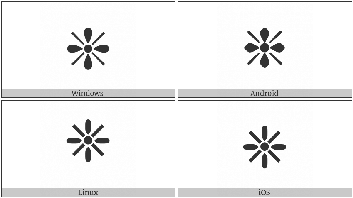 The image below shows how the “Heavy Sparkle” symbol might look like on different operating systems. If the font in which this web site is displayed does not contain the symbol and there is no fallback font able to render it, you can use the image below to get an idea of what it should look like.