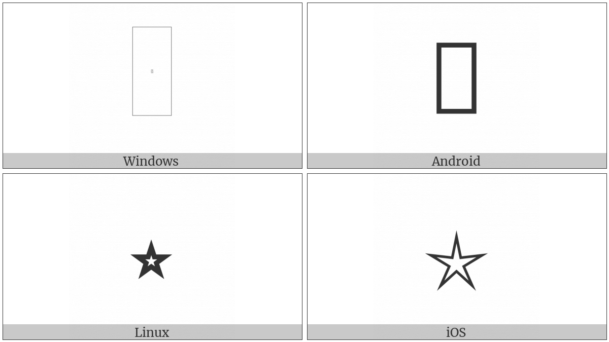 The image below shows how the “White Small Star” symbol might look like on different operating systems. If the font in which this web site is displayed does not contain the symbol and there is no fallback font able to render it, you can use the image below to get an idea of what it should look like.
