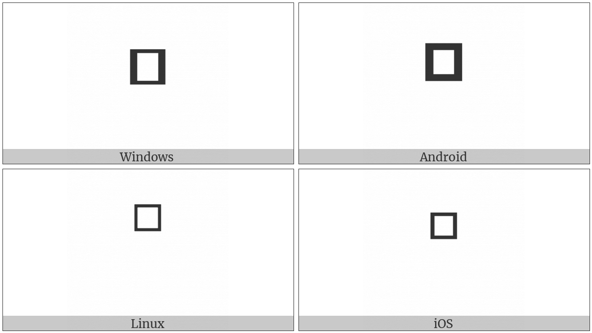 The image below shows how the “Raised Square” symbol might look like on different operating systems. If the font in which this web site is displayed does not contain the symbol and there is no fallback font able to render it, you can use the image below to get an idea of what it should look like.