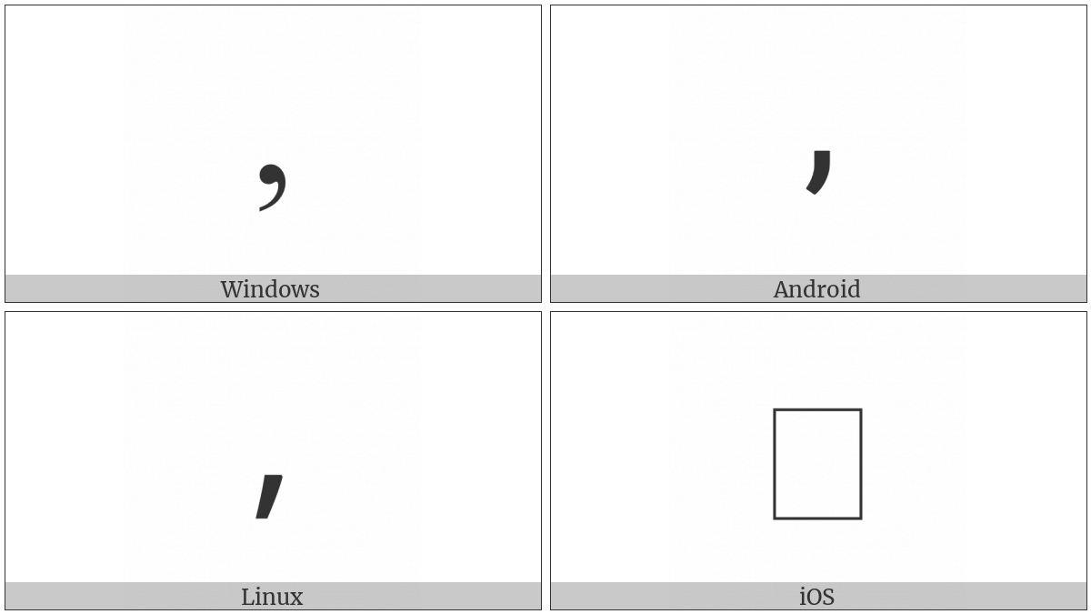 The image below shows how the “Raised Comma” symbol might look like on different operating systems. If the font in which this web site is displayed does not contain the symbol and there is no fallback font able to render it, you can use the image below to get an idea of what it should look like.