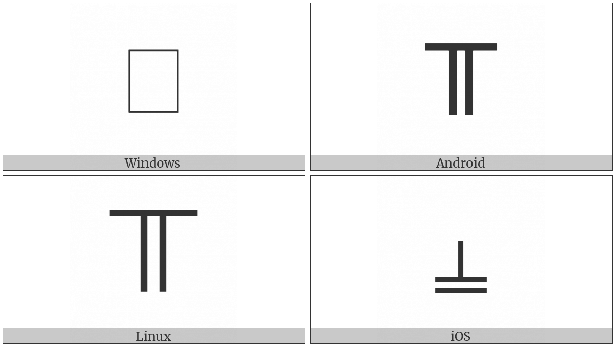 The image below shows how the “Counting Rod Tens Digit Seven” symbol might look like on different operating systems. If the font in which this web site is displayed does not contain the symbol and there is no fallback font able to render it, you can use the image below to get an idea of what it should look like.