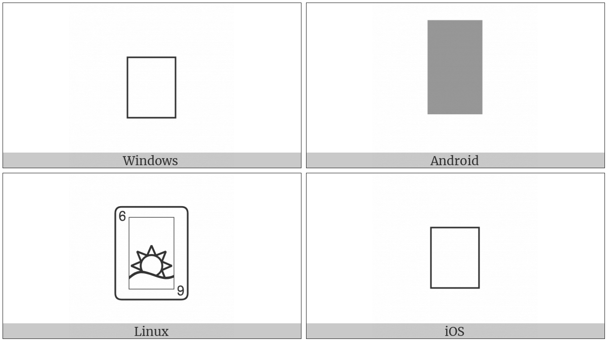 The image below shows how the “Playing Card Trump-6” symbol might look like on different operating systems. If the font in which this web site is displayed does not contain the symbol and there is no fallback font able to render it, you can use the image below to get an idea of what it should look like.