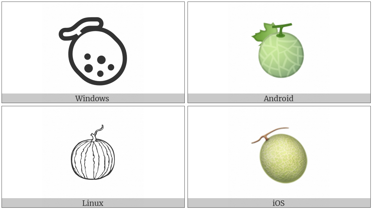 The image below shows how the “Melon” symbol might look like on different operating systems. If the font in which this web site is displayed does not contain the symbol and there is no fallback font able to render it, you can use the image below to get an idea of what it should look like.
