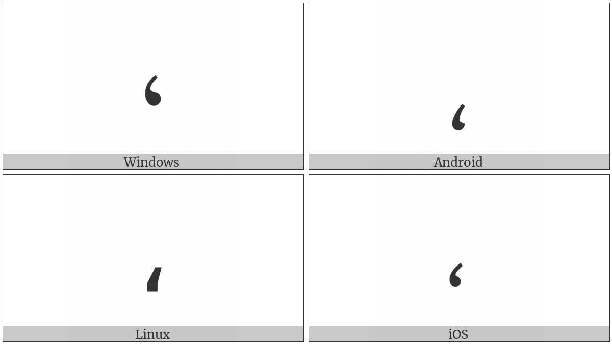 The image below shows how the “Arabic Comma” symbol might look like on different operating systems. If the font in which this web site is displayed does not contain the symbol and there is no fallback font able to render it, you can use the image below to get an idea of what it should look like.
