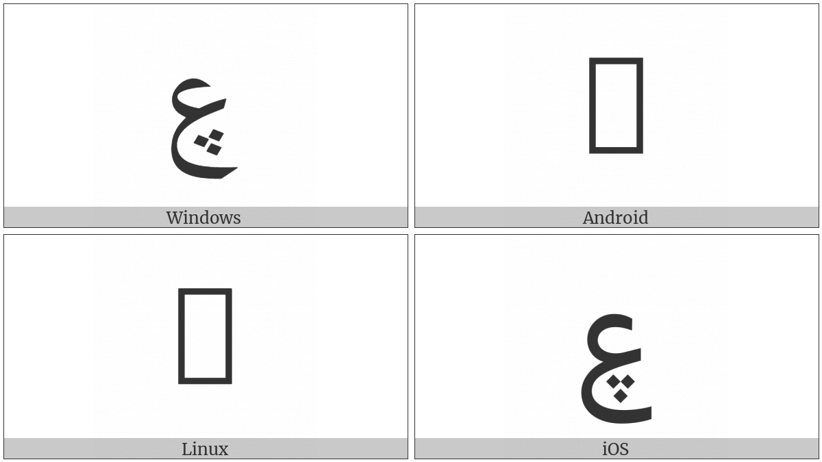 “Arabic Letter Ain With Three Dots Below” on various operating systems