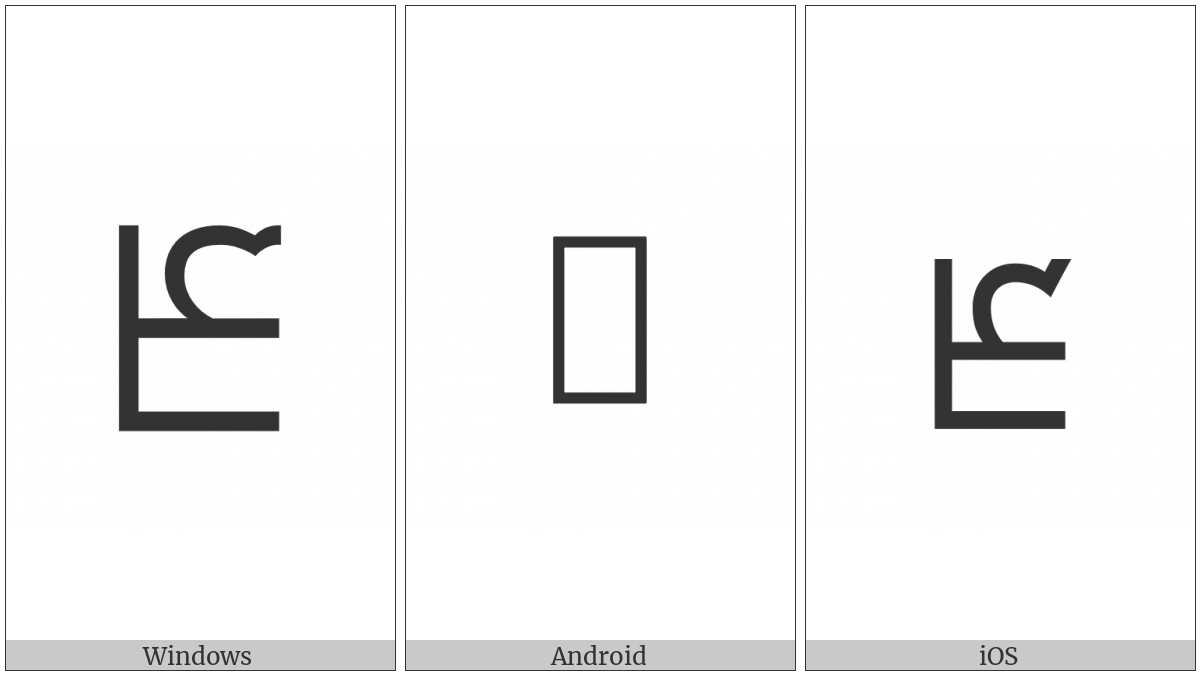 The image below shows how the “Phags-Pa Letter Ta” symbol might look like on different operating systems. If the font in which this web site is displayed does not contain the symbol and there is no fallback font able to render it, you can use the image below to get an idea of what it should look like.