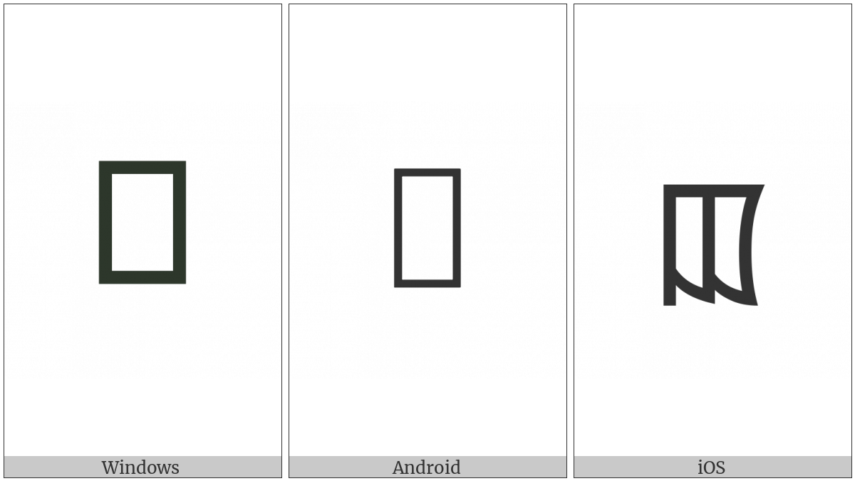 The image below shows how the “Phags-Pa Letter Tha” symbol might look like on different operating systems. If the font in which this web site is displayed does not contain the symbol and there is no fallback font able to render it, you can use the image below to get an idea of what it should look like.
