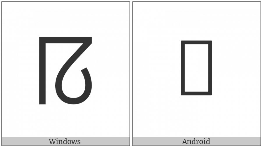 The image below shows how the “Phags-Pa Letter I” symbol might look like on different operating systems. If the font in which this web site is displayed does not contain the symbol and there is no fallback font able to render it, you can use the image below to get an idea of what it should look like.