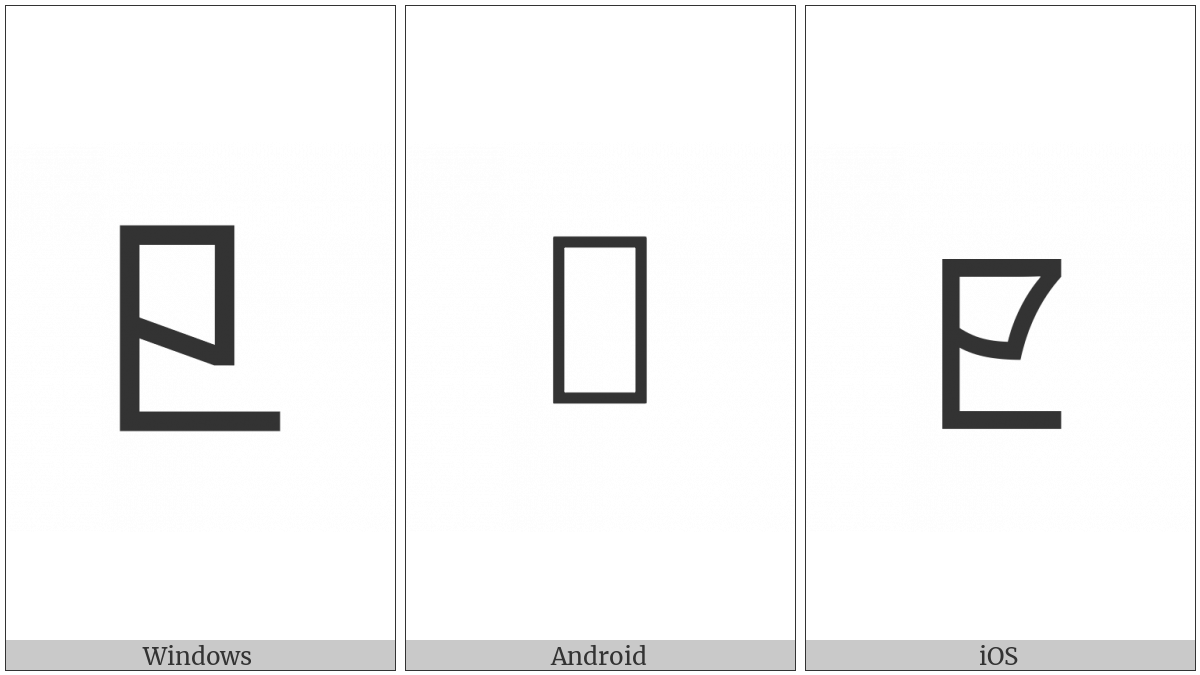 The image below shows how the “Phags-Pa Letter Qa” symbol might look like on different operating systems. If the font in which this web site is displayed does not contain the symbol and there is no fallback font able to render it, you can use the image below to get an idea of what it should look like.