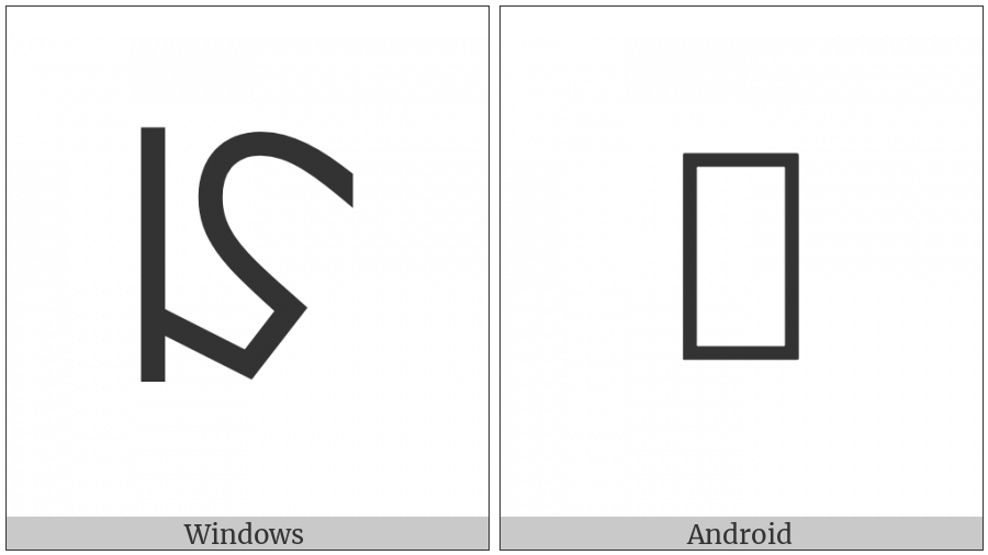 The image below shows how the “Phags-Pa Letter Voiced Ha” symbol might look like on different operating systems. If the font in which this web site is displayed does not contain the symbol and there is no fallback font able to render it, you can use the image below to get an idea of what it should look like.