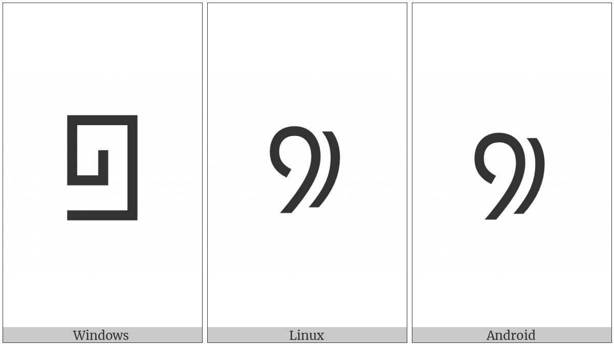 The image below shows how the “Phags-Pa Single Head Mark” symbol might look like on different operating systems. If the font in which this web site is displayed does not contain the symbol and there is no fallback font able to render it, you can use the image below to get an idea of what it should look like.