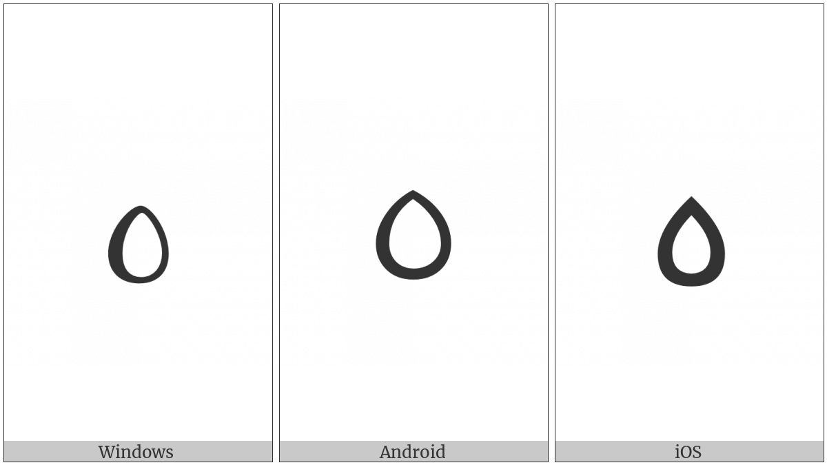 The image below shows how the “Javanese Pada Tirta Tumetes” symbol might look like on different operating systems. If the font in which this web site is displayed does not contain the symbol and there is no fallback font able to render it, you can use the image below to get an idea of what it should look like.