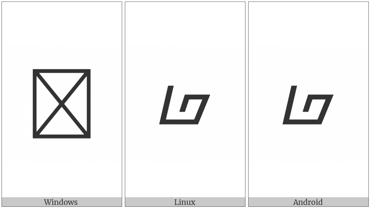 The image below shows how the “Buhid Letter Wa” symbol might look like on different operating systems. If the font in which this web site is displayed does not contain the symbol and there is no fallback font able to render it, you can use the image below to get an idea of what it should look like.