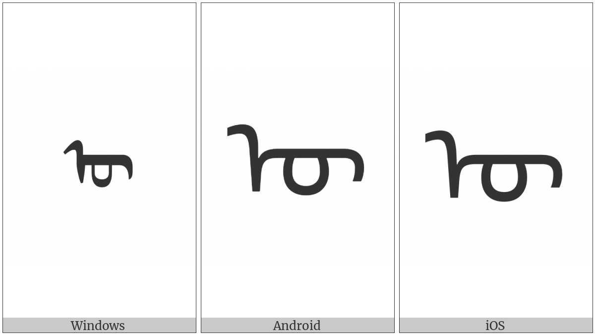 The image below shows how the “Mongolian Letter Oe” symbol might look like on different operating systems. If the font in which this web site is displayed does not contain the symbol and there is no fallback font able to render it, you can use the image below to get an idea of what it should look like.