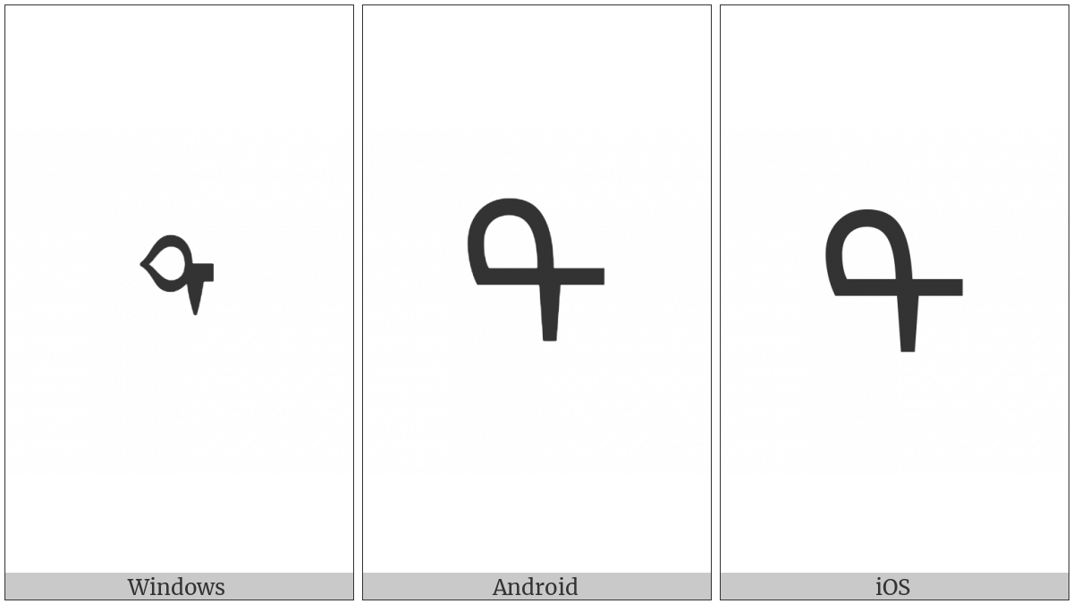 The image below shows how the “Mongolian Letter Ta” symbol might look like on different operating systems. If the font in which this web site is displayed does not contain the symbol and there is no fallback font able to render it, you can use the image below to get an idea of what it should look like.
