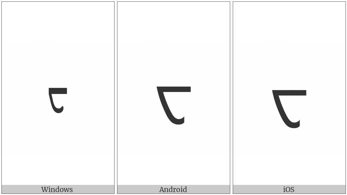 The image below shows how the “Mongolian Letter Wa” symbol might look like on different operating systems. If the font in which this web site is displayed does not contain the symbol and there is no fallback font able to render it, you can use the image below to get an idea of what it should look like.