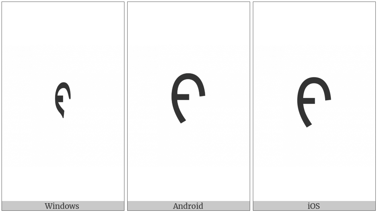 The image below shows how the “Mongolian Letter Kha” symbol might look like on different operating systems. If the font in which this web site is displayed does not contain the symbol and there is no fallback font able to render it, you can use the image below to get an idea of what it should look like.