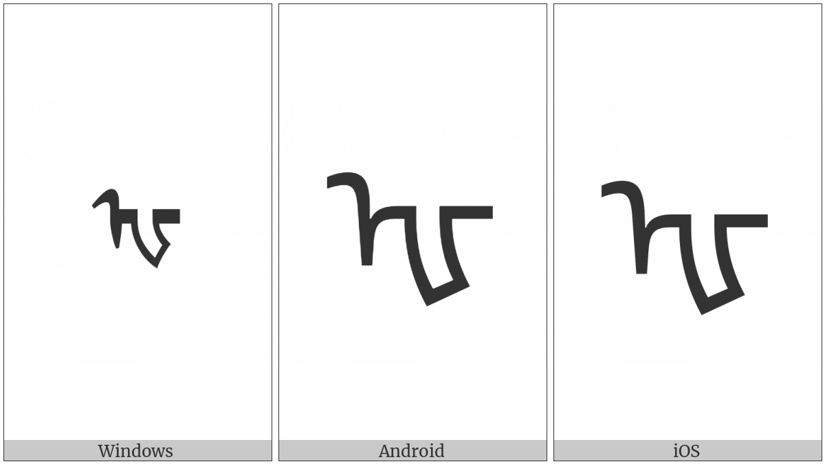 The image below shows how the “Mongolian Letter Haa” symbol might look like on different operating systems. If the font in which this web site is displayed does not contain the symbol and there is no fallback font able to render it, you can use the image below to get an idea of what it should look like.