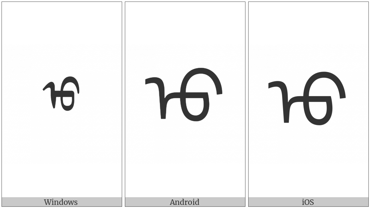 The image below shows how the “Mongolian Letter Todo Ue” symbol might look like on different operating systems. If the font in which this web site is displayed does not contain the symbol and there is no fallback font able to render it, you can use the image below to get an idea of what it should look like.