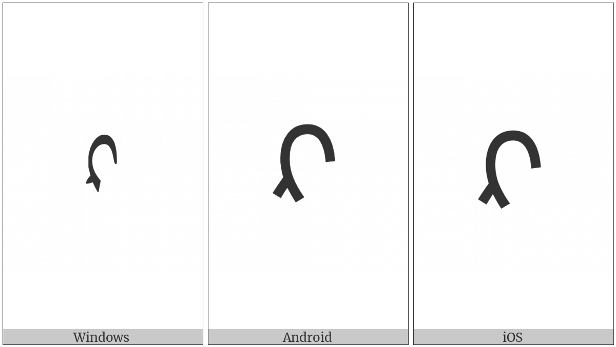 The image below shows how the “Mongolian Letter Todo Gaa” symbol might look like on different operating systems. If the font in which this web site is displayed does not contain the symbol and there is no fallback font able to render it, you can use the image below to get an idea of what it should look like.