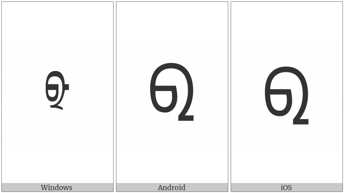 The image below shows how the “Mongolian Letter Todo Jia” symbol might look like on different operating systems. If the font in which this web site is displayed does not contain the symbol and there is no fallback font able to render it, you can use the image below to get an idea of what it should look like.
