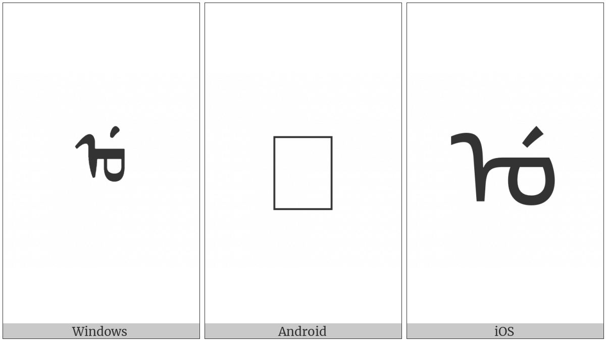 The image below shows how the “Mongolian Letter Sibe Ue” symbol might look like on different operating systems. If the font in which this web site is displayed does not contain the symbol and there is no fallback font able to render it, you can use the image below to get an idea of what it should look like.
