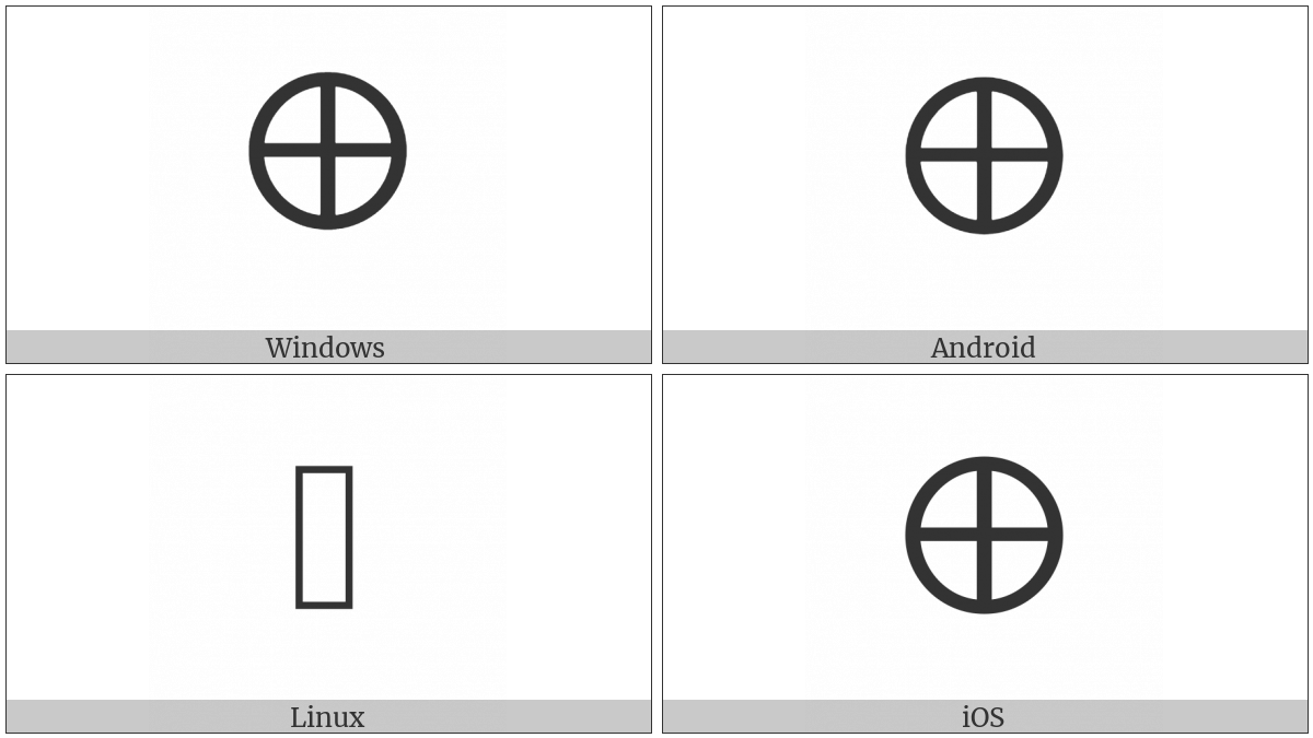 The image below shows how the “Linear A Sign Ab077” symbol might look like on different operating systems. If the font in which this web site is displayed does not contain the symbol and there is no fallback font able to render it, you can use the image below to get an idea of what it should look like.