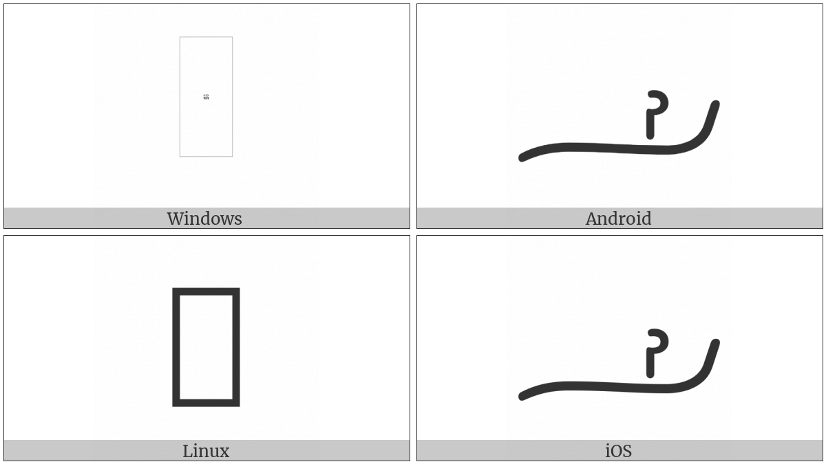 The image below shows how the “Meroitic Cursive Number Nine Hundred” symbol might look like on different operating systems. If the font in which this web site is displayed does not contain the symbol and there is no fallback font able to render it, you can use the image below to get an idea of what it should look like.