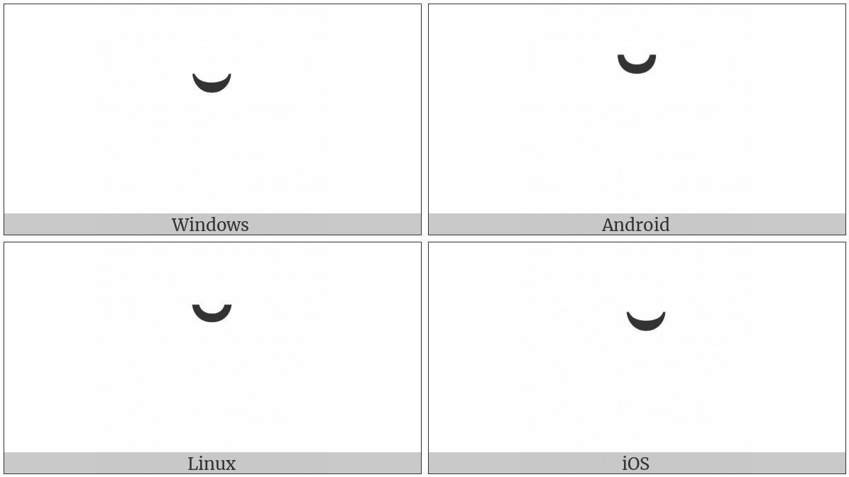 The image below shows how the “Combining Breve” symbol might look like on different operating systems. If the font in which this web site is displayed does not contain the symbol and there is no fallback font able to render it, you can use the image below to get an idea of what it should look like.