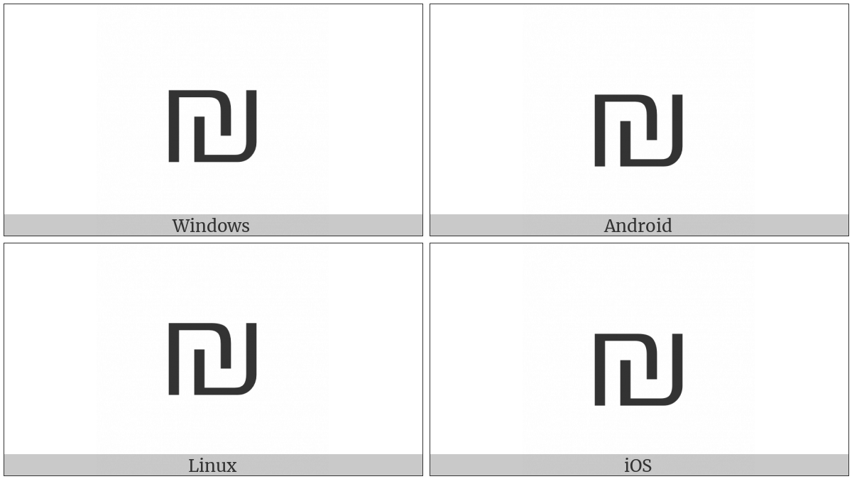 The image below shows how the “New Sheqel Sign” symbol might look like on different operating systems. If the font in which this web site is displayed does not contain the symbol and there is no fallback font able to render it, you can use the image below to get an idea of what it should look like.