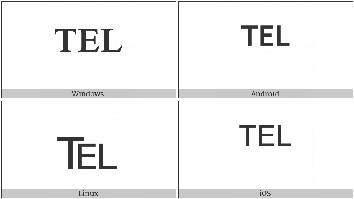 The image below shows how the “Telephone Sign” symbol might look like on different operating systems. If the font in which this web site is displayed does not contain the symbol and there is no fallback font able to render it, you can use the image below to get an idea of what it should look like.