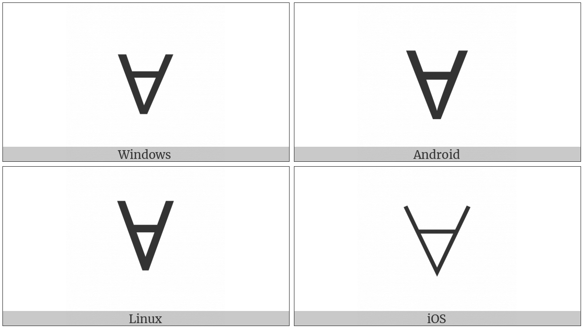 The image below shows how the “For All” symbol might look like on different operating systems. If the font in which this web site is displayed does not contain the symbol and there is no fallback font able to render it, you can use the image below to get an idea of what it should look like.
