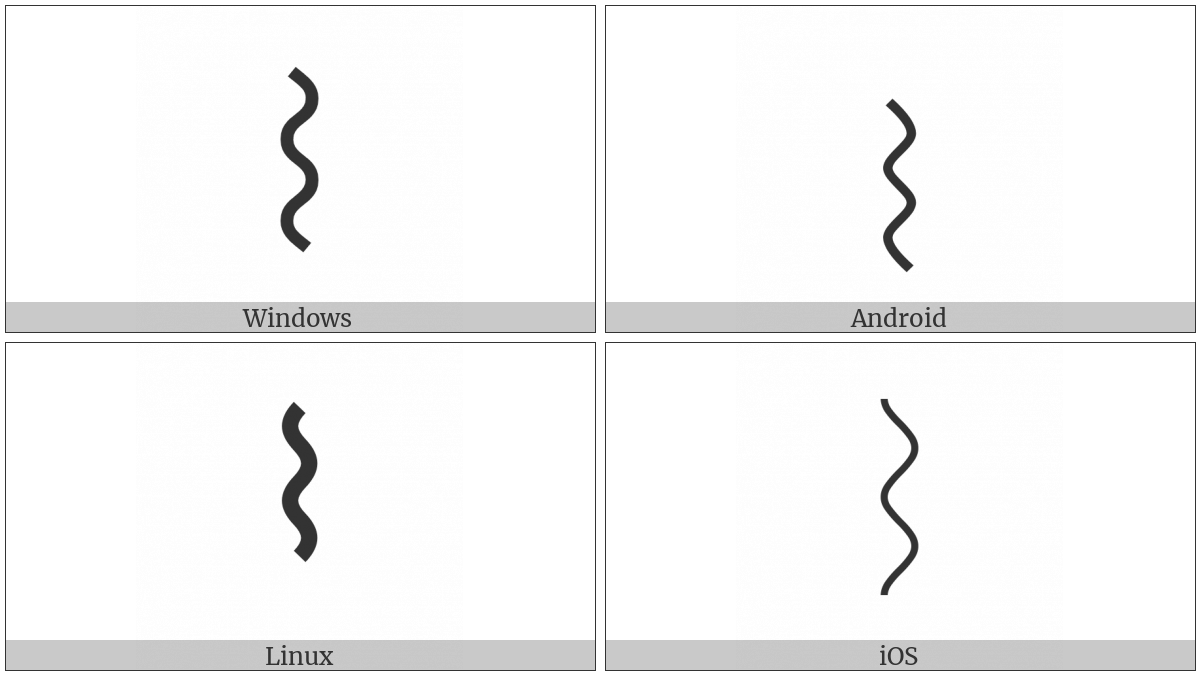 The image below shows how the “Wavy Line” symbol might look like on different operating systems. If the font in which this web site is displayed does not contain the symbol and there is no fallback font able to render it, you can use the image below to get an idea of what it should look like.