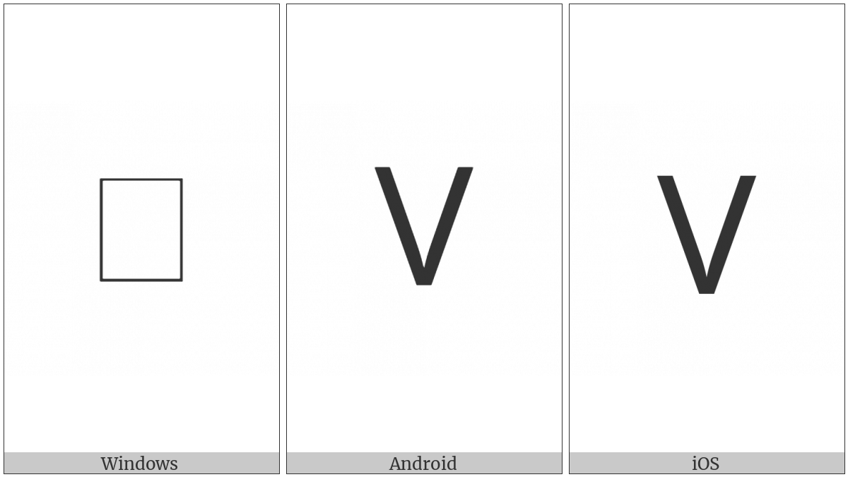 The image below shows how the “Miao Letter Va” symbol might look like on different operating systems. If the font in which this web site is displayed does not contain the symbol and there is no fallback font able to render it, you can use the image below to get an idea of what it should look like.