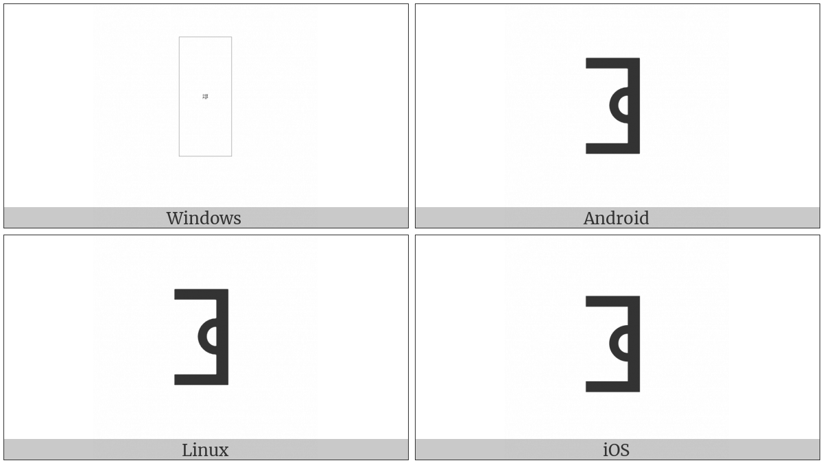 The image below shows how the “Miao Letter Ga” symbol might look like on different operating systems. If the font in which this web site is displayed does not contain the symbol and there is no fallback font able to render it, you can use the image below to get an idea of what it should look like.