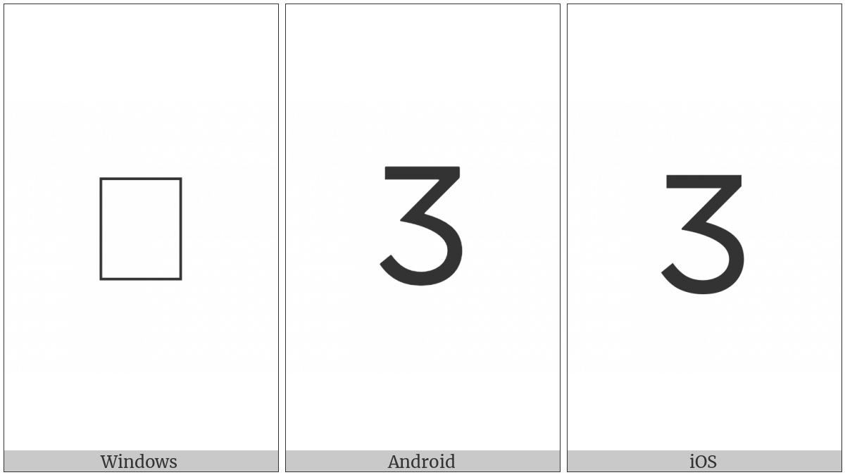 The image below shows how the “Miao Letter Za” symbol might look like on different operating systems. If the font in which this web site is displayed does not contain the symbol and there is no fallback font able to render it, you can use the image below to get an idea of what it should look like.