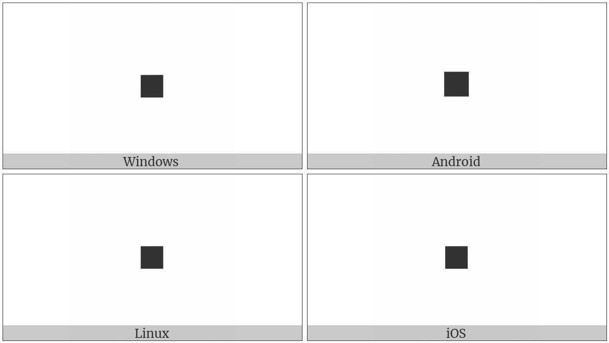 The image below shows how the “Black Small Square” symbol might look like on different operating systems. If the font in which this web site is displayed does not contain the symbol and there is no fallback font able to render it, you can use the image below to get an idea of what it should look like.