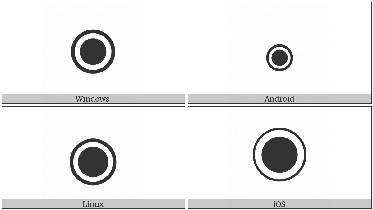 The image below shows how the “Fisheye” symbol might look like on different operating systems. If the font in which this web site is displayed does not contain the symbol and there is no fallback font able to render it, you can use the image below to get an idea of what it should look like.