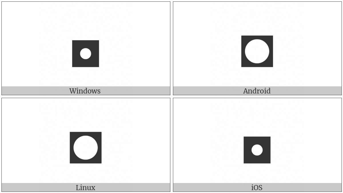 The image below shows how the “Inverse Bullet” symbol might look like on different operating systems. If the font in which this web site is displayed does not contain the symbol and there is no fallback font able to render it, you can use the image below to get an idea of what it should look like.