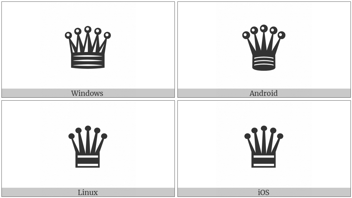 The image below shows how the “Black Chess Queen” symbol might look like on different operating systems. If the font in which this web site is displayed does not contain the symbol and there is no fallback font able to render it, you can use the image below to get an idea of what it should look like.