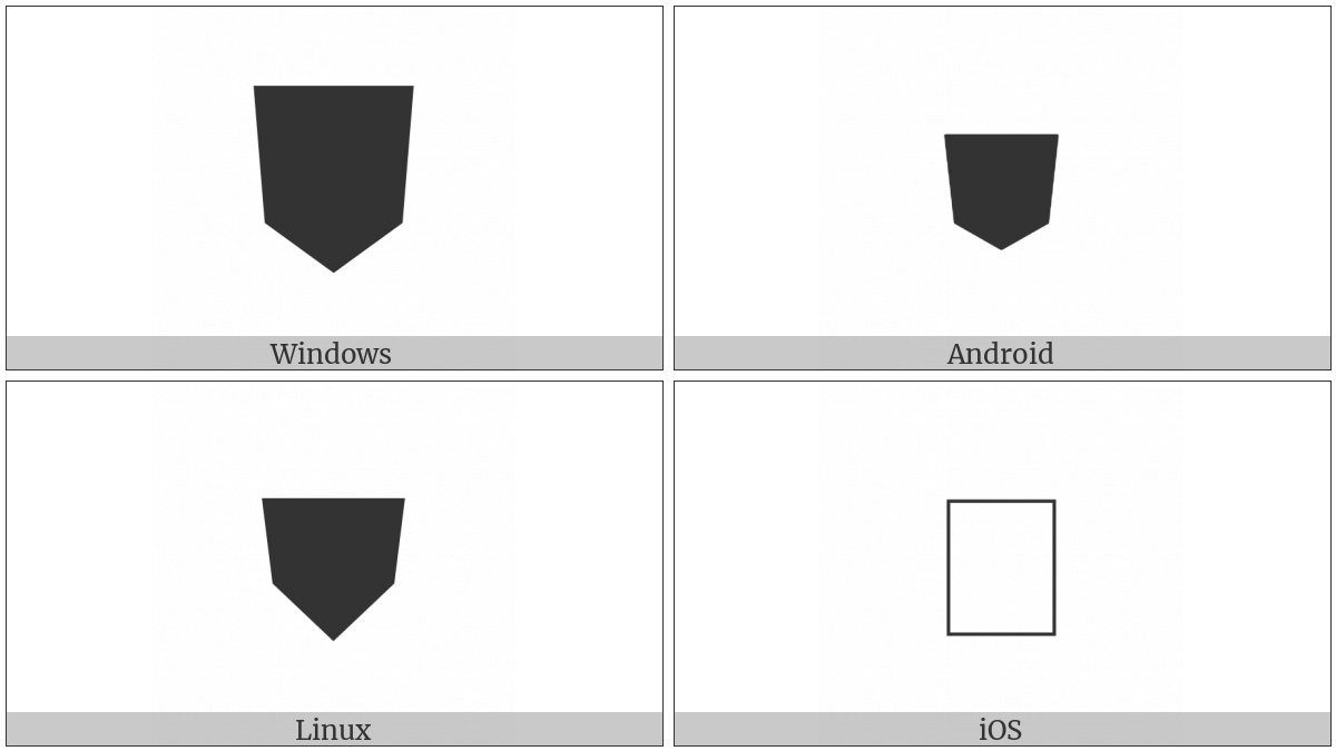 The image below shows how the “Turned Black Shogi Piece” symbol might look like on different operating systems. If the font in which this web site is displayed does not contain the symbol and there is no fallback font able to render it, you can use the image below to get an idea of what it should look like.