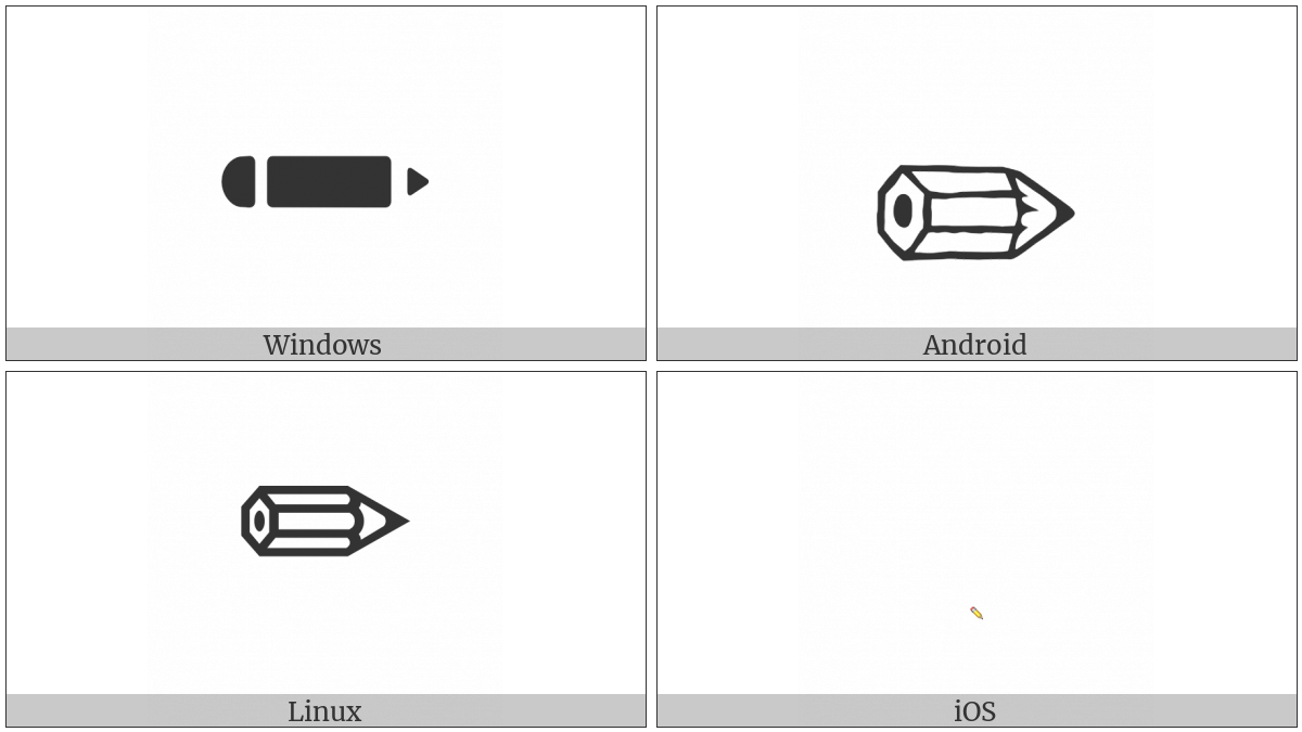 The image below shows how the “Pencil” symbol might look like on different operating systems. If the font in which this web site is displayed does not contain the symbol and there is no fallback font able to render it, you can use the image below to get an idea of what it should look like.