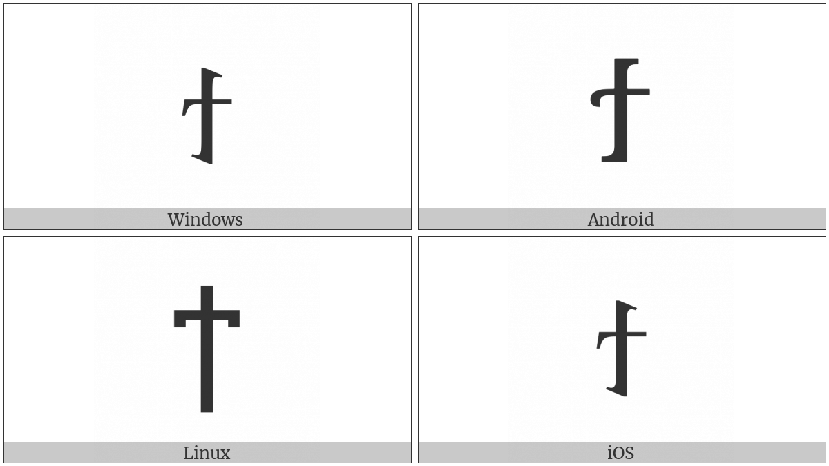 The image below shows how the “Coptic Small Letter Dei” symbol might look like on different operating systems. If the font in which this web site is displayed does not contain the symbol and there is no fallback font able to render it, you can use the image below to get an idea of what it should look like.