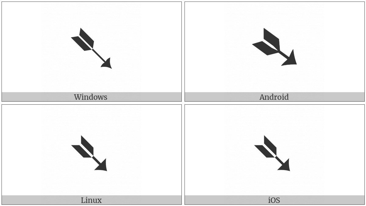 The image below shows how the “Black-Feathered South East Arrow” symbol might look like on different operating systems. If the font in which this web site is displayed does not contain the symbol and there is no fallback font able to render it, you can use the image below to get an idea of what it should look like.