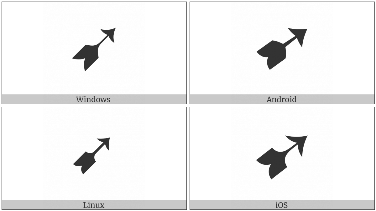 The image below shows how the “Heavy Black-Feathered North East Arrow” symbol might look like on different operating systems. If the font in which this web site is displayed does not contain the symbol and there is no fallback font able to render it, you can use the image below to get an idea of what it should look like.