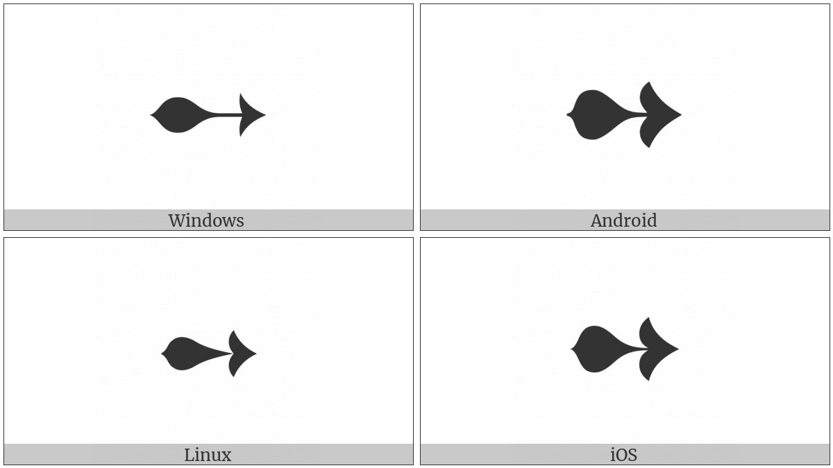 The image below shows how the “Heavy Teardrop-Shanked Rightwards Arrow” symbol might look like on different operating systems. If the font in which this web site is displayed does not contain the symbol and there is no fallback font able to render it, you can use the image below to get an idea of what it should look like.