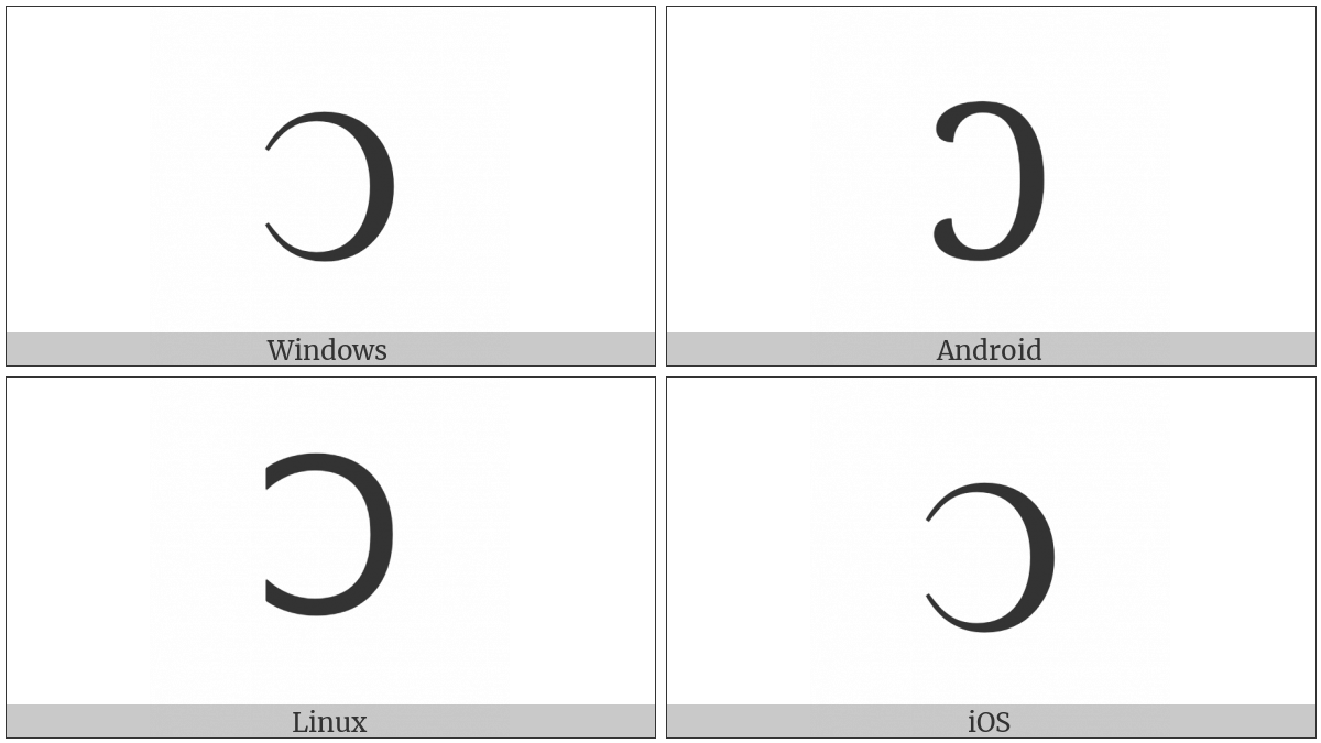The image below shows how the “Greek Capital Reversed Lunate Sigma Symbol” symbol might look like on different operating systems. If the font in which this web site is displayed does not contain the symbol and there is no fallback font able to render it, you can use the image below to get an idea of what it should look like.