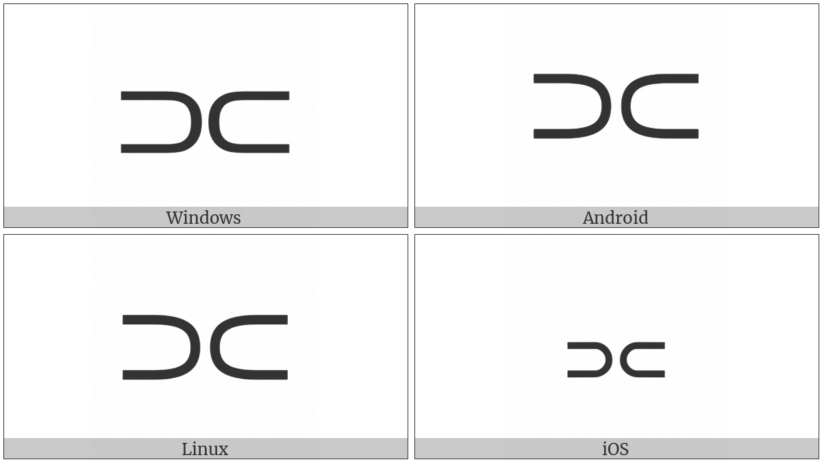 The image below shows how the “Superset Beside Subset” symbol might look like on different operating systems. If the font in which this web site is displayed does not contain the symbol and there is no fallback font able to render it, you can use the image below to get an idea of what it should look like.