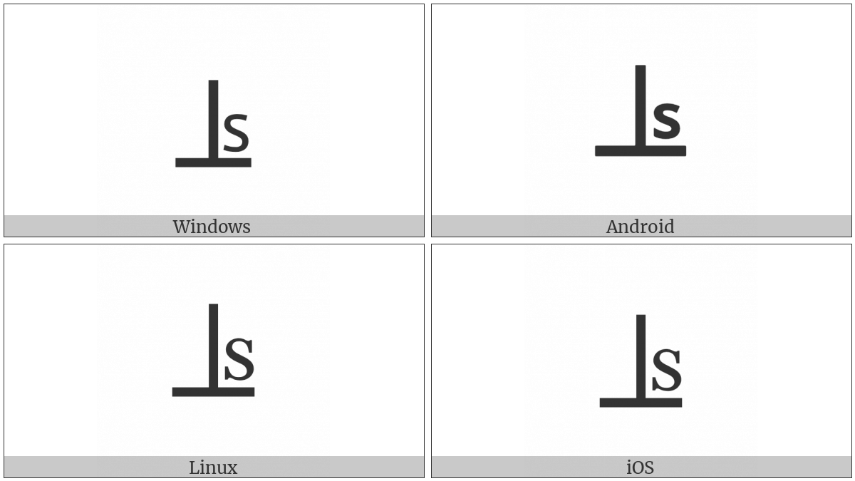The image below shows how the “Perpendicular With S” symbol might look like on different operating systems. If the font in which this web site is displayed does not contain the symbol and there is no fallback font able to render it, you can use the image below to get an idea of what it should look like.