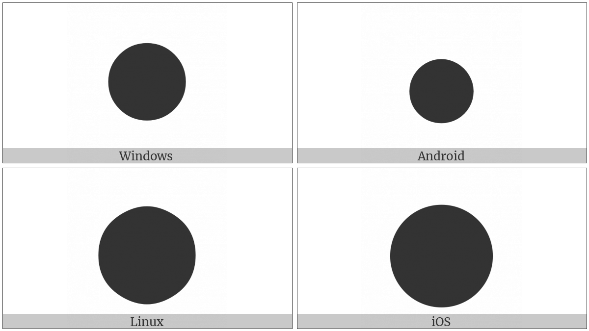 The image below shows how the “Black Large Circle” symbol might look like on different operating systems. If the font in which this web site is displayed does not contain the symbol and there is no fallback font able to render it, you can use the image below to get an idea of what it should look like.